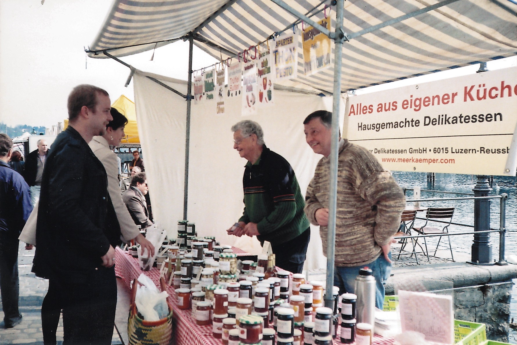 Seit über 25 Jahren haben Beat & Hans-Peter Meerkämper auf diversen Märkten von Luzern bis Basel die Produkte verkauft, die wir in Reussbühl produzieren. Im Laufe der Zeit sind Feinkostläden, Restaurants sowie Gourmet-Liebhaber in der ganzen Schweiz auf uns aufmerksam geworden, und es ist eine starke Stammkundschaft von Feinschmeckern entstanden.